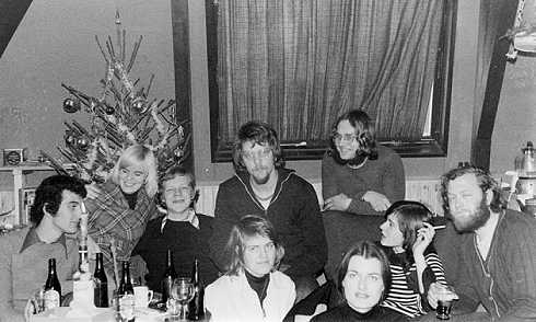 Groepsfoto gemaakt tijdens Kerstmis 1975. vlnr: Peter van Ass, Marjolein